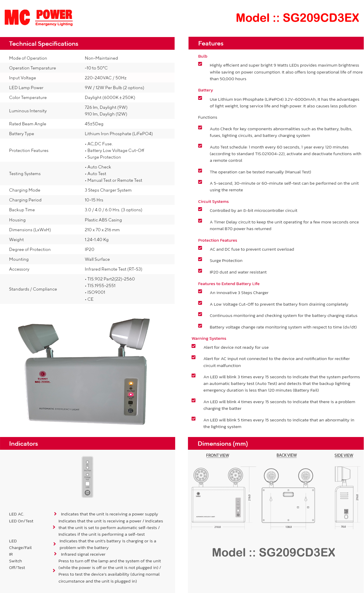eMERGENCY LIGHT for export (model :: sg209cd3ex)